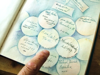 V Poděbradech 13.10.2007: za kazatelnou a nad kronikou, kde našel svůj záznam z 15.12.1946 z jedné návštěvy shromáždění v Poděbradech